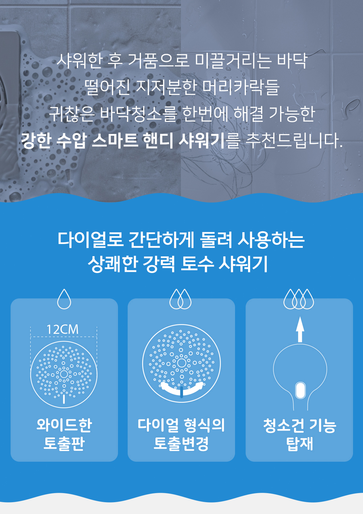 이미지 확대보기5단 토출모드 (청소건모드) 스마트 욕실 샤워기